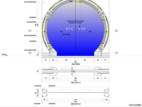 - Nắp che hộp kỹ thuật bao phủ toàn bộ hệ thống ray và thiết bị.
